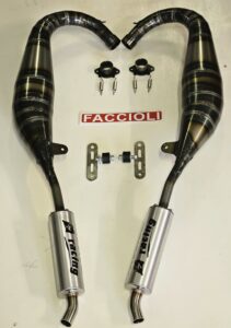 n.2 TUBERIE SCARICO AD ESPANSIONE ARTIGIANALI RACING, COMPLETE DI SILENZIATORI IN ALLUMINIO-INOX RIGENERABILI |